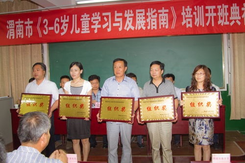 开班典礼上,市教育局副局长王建国宣布了“全市幼儿园优秀自制玩教具和优秀教育案例评选结果”,对获得组织奖的临渭区教育局等单位和个人进行了表彰奖励。