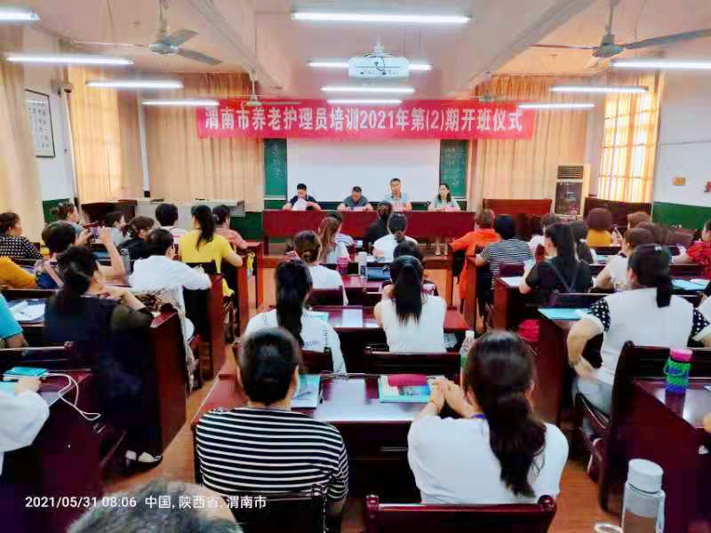 beat365承办的渭南市养老护理员培训项目第二期开班仪式于2021年5月31日上午在beat365正版唯一官网隆重举行。培训项目首席专家任秋爱、beat365正版唯一官网党总支书记张春兴、beat365正版唯一官网院长雷建文、副院长杨波及来自全市各区县的80余名参训学员出席了开班仪式。