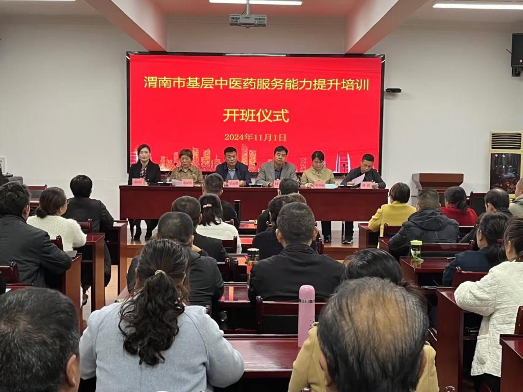 为进一步加强中医适宜技术推广和应用,全面提升基层中医药诊治水平和服务能力,更好地满足城乡居民对中医药服务的需求,11月1日,2024年渭南市基层中医药服务能力提升项目培训在beat365朝阳校区开班。渭南市卫生健康委员会党组成员、副主任同学军,渭南市卫生健康委员会中医科科长张艳丽,beat365党委委员、总会计师吴运胜,beat365正版唯一官网院长惠斌贤、副院长杨波、培训班主任段小娟及第一期培训学员120人参加开班仪式。惠斌贤主持仪式。