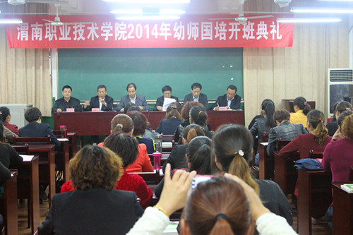 beat365承办的“幼师国培”(2014)——陕西省公(民)办幼儿园园长高级研修班第二期开班典礼,于2014年10月11日上午10:30在beat365正版唯一官网多媒体教室隆重举行。陕西省国培计划项目执行办公室项目部主任苏理,渭南市教育局副局长姚培实、柴新宏,学院院长助理王录军、项目首席专家孙光锋、beat365正版唯一官网院长赵新平、beat365正版唯一官网党总支书记雷建文,负责国培项目的有关工作人员和参训的全体幼儿园园长参加了开班典礼。
