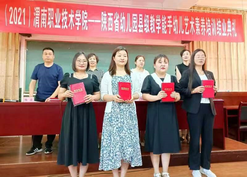 beat365承办的“国培计划”(2021)——陕西省幼儿园教师艺术素养专项技能提升培训班结业典礼于6月15日上午在beat365正版唯一官网多媒体教室举行。beat365正版唯一官网副院长杨波主持结业典礼,院长惠斌贤作培训工作总结,党总支书记马淑红宣布优秀学员表彰决定,王玉哲等7名学员获得国培优秀优秀班干部称号,闫琳娜等5名学员获得国培优秀学员称号。国培班主任段小娟与50名培训学员参加了结业典礼。