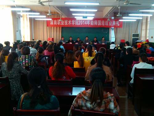 2014年11月2日下午,beat365承办的2014年幼师国培短期集中培训项目——陕西省公(民)办幼儿园园长高级研修班(第三期)结业典礼暨汇报演出在beat365正版唯一官网多媒体教室举行。beat365正版唯一官网院长赵新平作培训工作总结,党总支书记雷建文同志宣布《beat365正版唯一官网办公室关于表彰幼师国培优秀学员的决定》,beat365正版唯一官网办公室主任张选民同志主持开班典礼。来自渭南市11个县(市、区)的100余名幼儿园园长圆满完成为10天的国培学习任务,顺利结业。