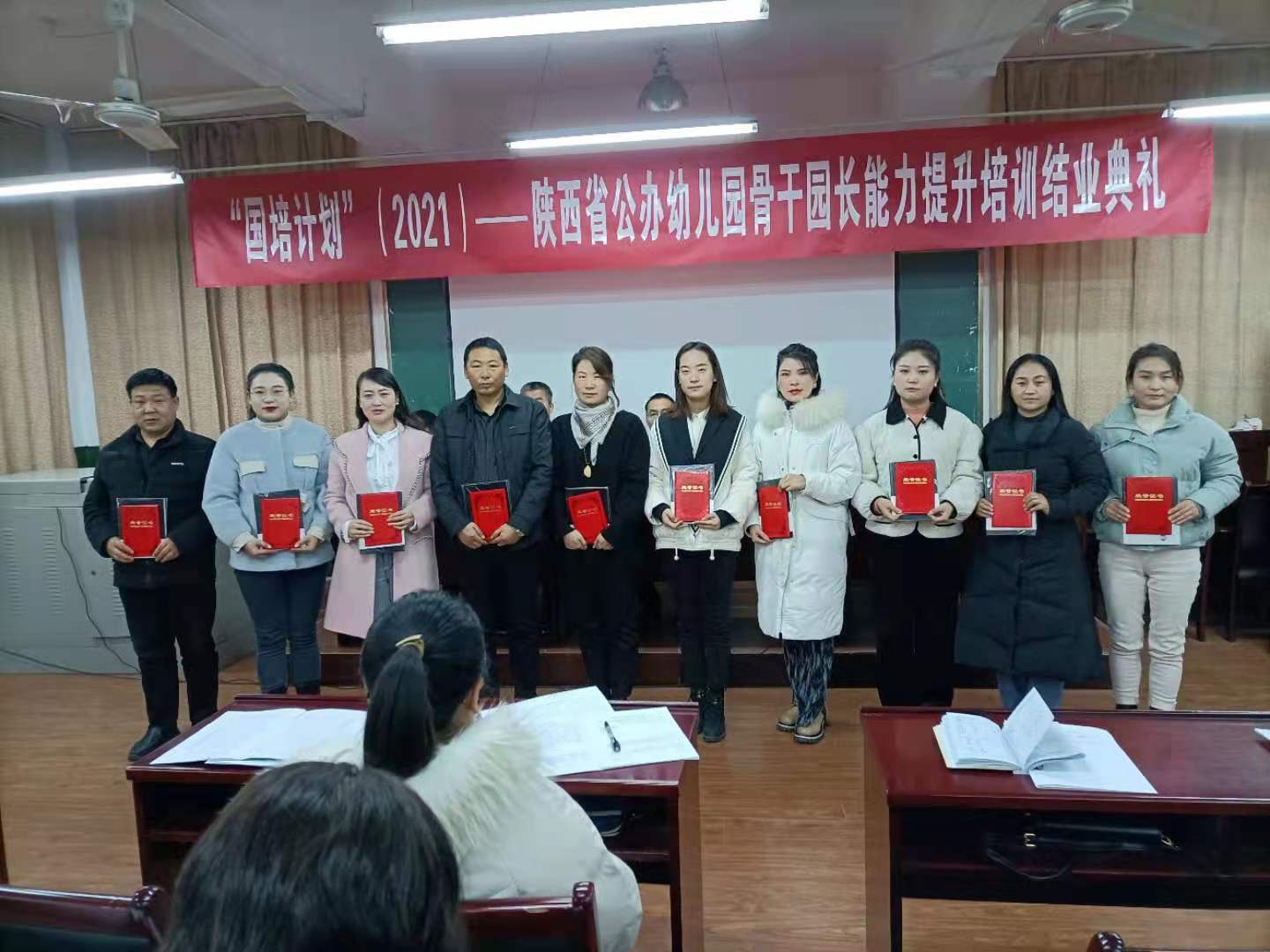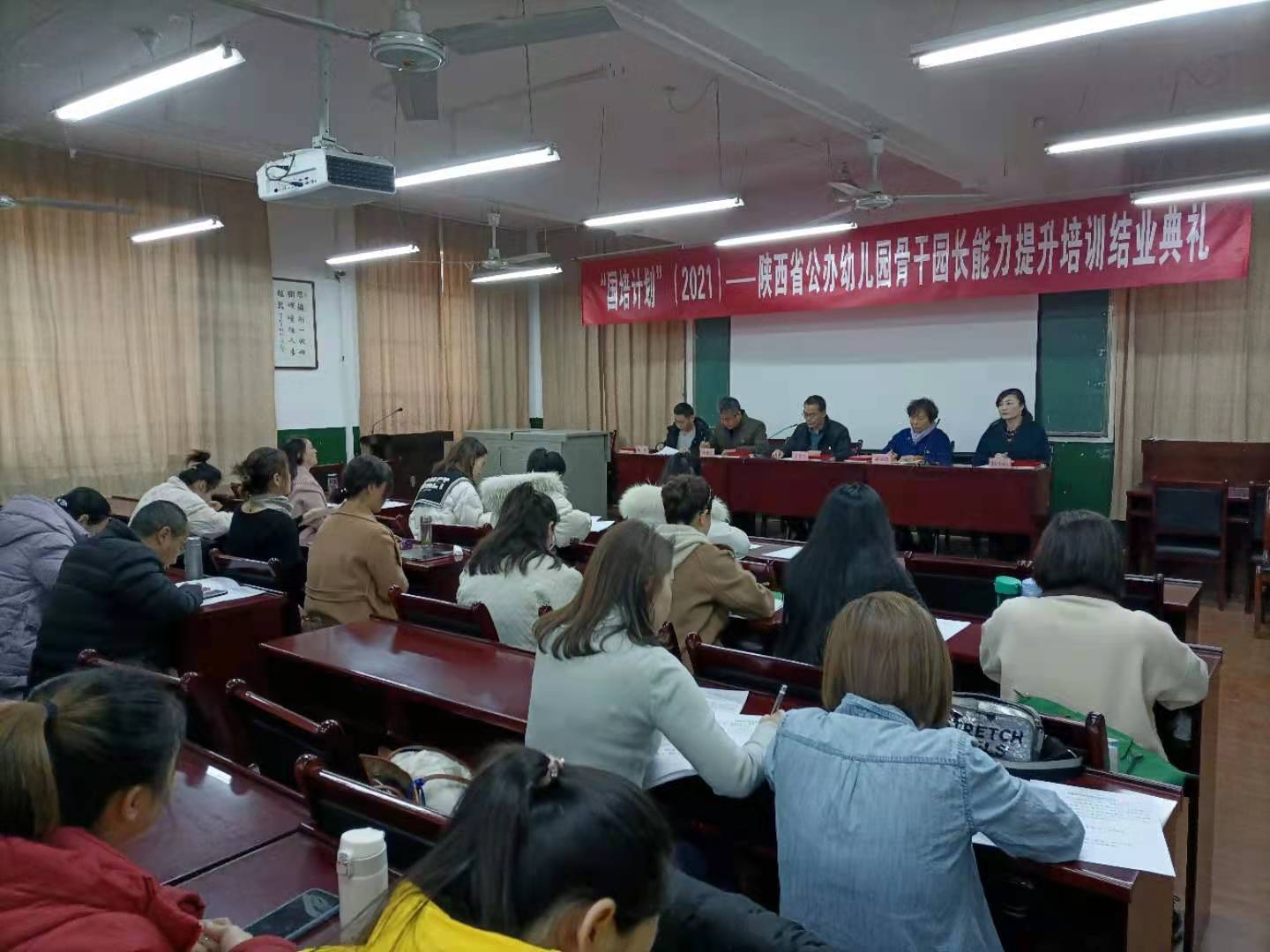 国培计划”(2021)——陕西省公办幼儿园骨干园长能力提升培训项目结业典礼于12月16日上午在beat365正版唯一官网多媒体教室隆重举行。beat365正版唯一官网副院长王韦华、党政办公室主任雷建文、beat365正版唯一官网党总支书记惠斌贤、beat365正版唯一官网副院长杨波、国培班主任段小娟及来自全省各地市的50名参训学员出席了参加了结业典礼。