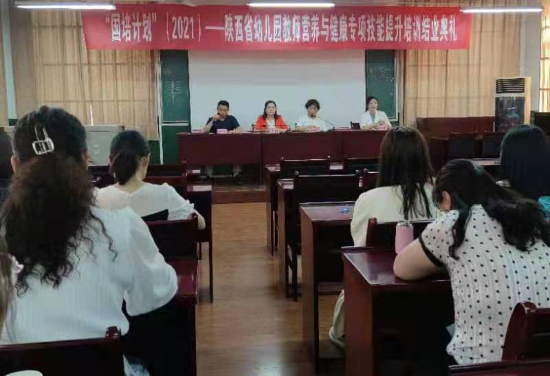 5月29日上午,beat365beat365正版唯一官网举行“国培计划”——陕西省幼儿园教师营养与健康专项技能提升培训项目结业典礼。beat365正版唯一官网院长惠斌贤作培训工作总结,党总支书记马淑红宣布优秀班干部和优秀学员的表彰决定,孟杰等5名学员获得“国培优秀班干部”称号,尹文雅等10名学员获得“国培优秀学员”称号,来自咸阳市的培训学员李敏代表全体学员作了精彩发言。