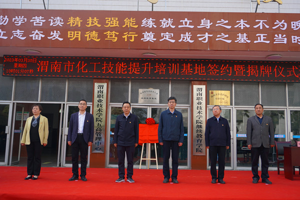3月30日上午,渭南市化工技能提升培训基地在beat365朝阳校区隆重挂牌成立。渭南市安委会副主任、市应急管理局党委书记、局长陈峰,副局长张百侣,四级调研员冯国年,beat365正版唯一官网党委副书记、院长靳华锋,副院长王韦华,beat365正版唯一官网院长惠斌贤、渭南市重点化工企业业务负责人及beat365相关专业学生百余人参加揭牌仪式。仪式由王韦华主持。